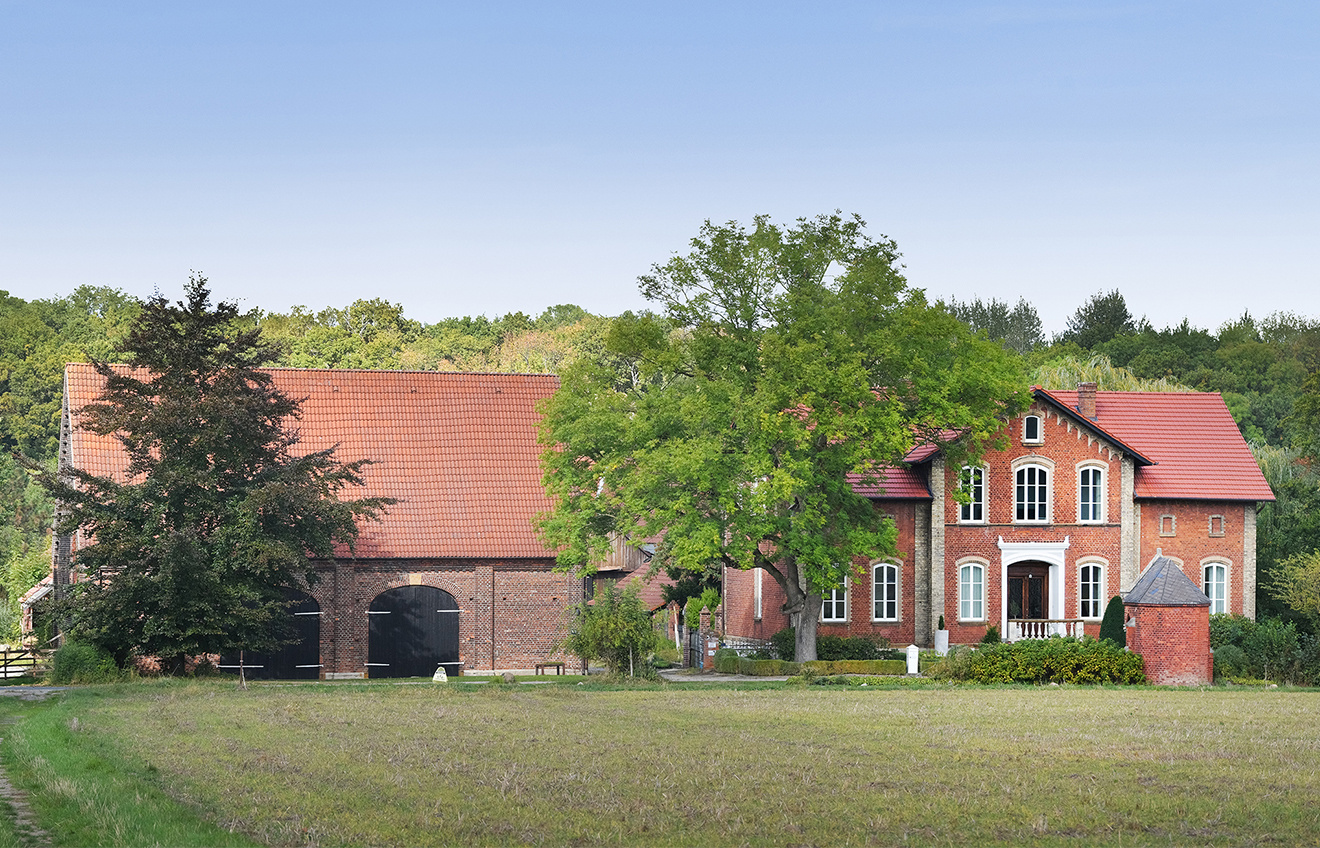 Der ehemalige Hof wurde behutsam umgebaut und architektonisch neu interpretiert. Mit seinem historischen Bezug zu Haus Nottbeck greift das Ensemble die regionale Baukultur auf und führt sie in eine zeitgemäße Formensprache über. Bestehende Strukturen und Materialien wurden weitgehend erhalten und mit klaren neuen Elementen ergänzt. So entsteht ein harmonischer Dialog zwischen Altbestand und moderner Architektur.
