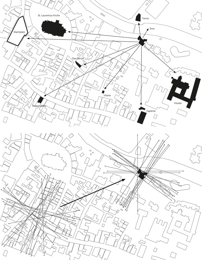 Auch mit der Aufnahme vorhandener Raumkanten, wie die Einreihung in die Straßenflucht, sowie mit der Schaffung von Sichtbezügen, etwa die Ausrichtung von Fenstern auf die nahe gelegene historische Kirche, werden städtebauliche Verbindungen geschaffen. Zugleich setzt sich das Haus mit seiner modernen Formensprache ab. Das Konzept ist einmalig, da es sich aufgrund seiner Bezüge nur an diesem Standort sinnvoll und begründet verwirklichen lässt.